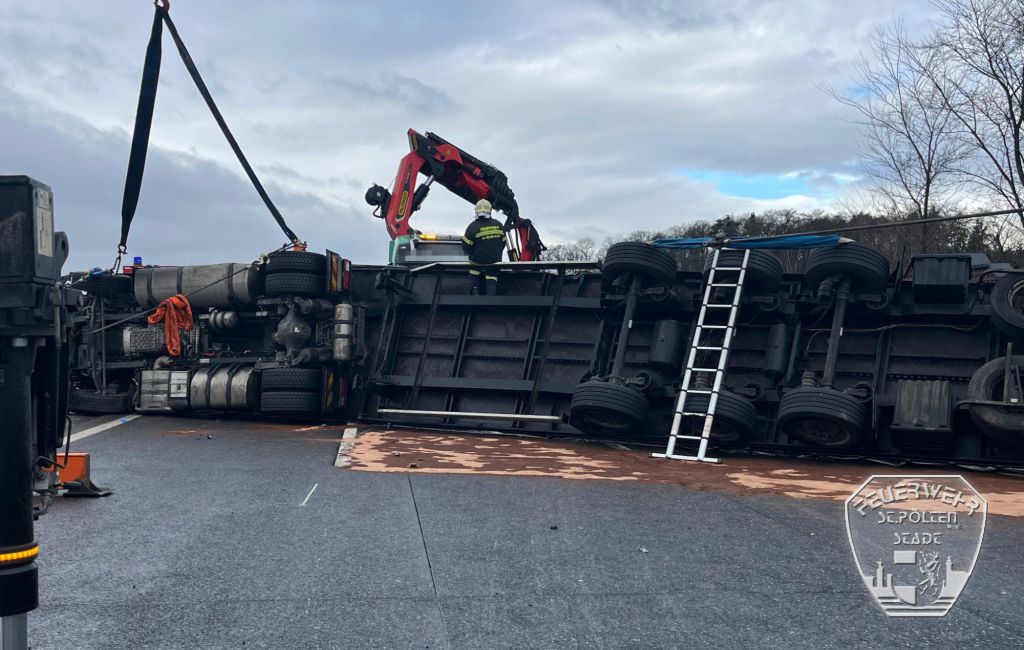 Schon am Vortag, dem 16.02.2026, war der Kran auf der A1 bei einer LKW-Bergung eingesetzt. Ob der Wintereinbruch Mitauslöser für diesen Unfall war, ist unbekannt.