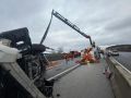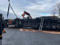 Parallel dazu waren das Kranfahrzeug und das Kranbegleit (Welchselladeaufbau auf WLF) mit der Bergung des LKW befasst, die sich aufgrund der Ladung schwierig gestaltete – geladen waren zahlreiche meterlange Metallstangen, von denen eine einzelne rund 250 kg wog. Erst nachdem diese Ladung durch Kräne eines privaten Unternehmens entfernt war, konnte das Fahrzeug mithilfe der Kran-Seilwinde wieder aufgestellt und schließlich von der Fahrbahn gebracht werden.