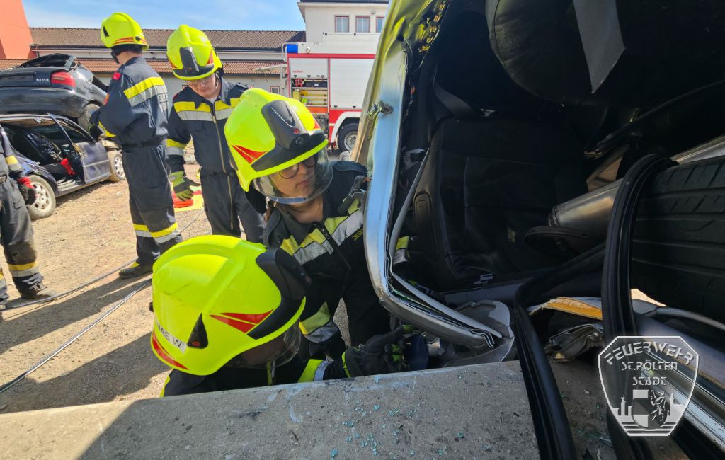 Am Samstagmorgen (12.04.2025) glich das Gelände hinter dem Böheimkirchner Feuerwehrhaus einem Schlachtfeld: 10 schwer beschädigte Fahrzeuge lagen herum, zum Teil auf der Seite oder auf dem Dach. Das war allerdings so beabsichtigt, denn rund 30 Mitglieder der FF Böheimkirchen und der FF St. Pölten-Stadt warteten bereits darauf, unterschiedliche technische Einsatzszenarien abzuarbeiten.