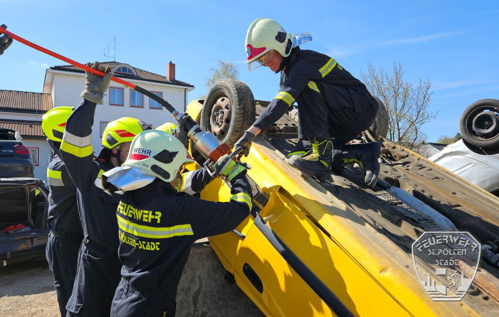 Intensiver Großübungstag: Gleich fünf Szenarien zum Thema „Menschenrettung nach Verkehrsunfall“ wurden über mehrere Stunden von Mitgliedern der Freiwilligen Feuerwehren Böheimkirchen-Markt und St. Pölten-Stadt bewältigt.